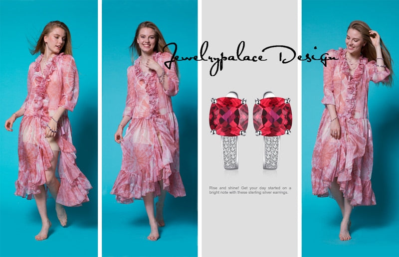 JewelryPalace 4ct Pigeon Blood Red Ruby Engagement Wedding Solid 925 Sterling Silver Earrings Clip Fine Jewelry Brand New