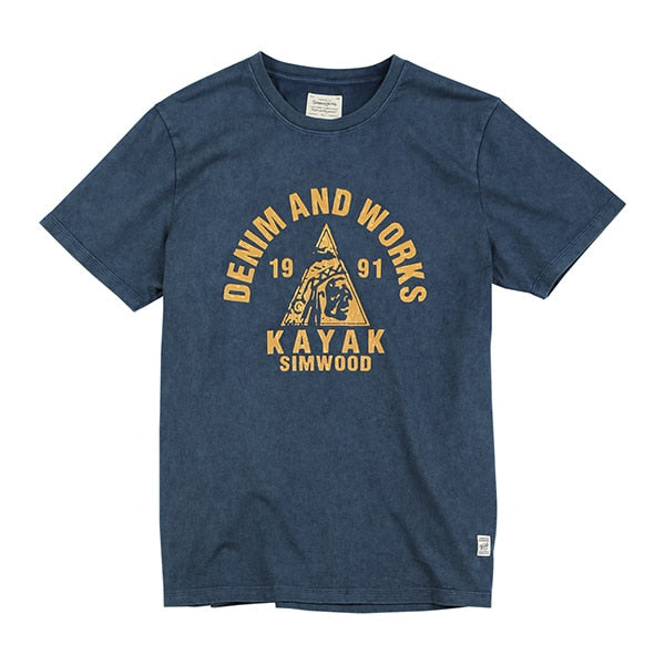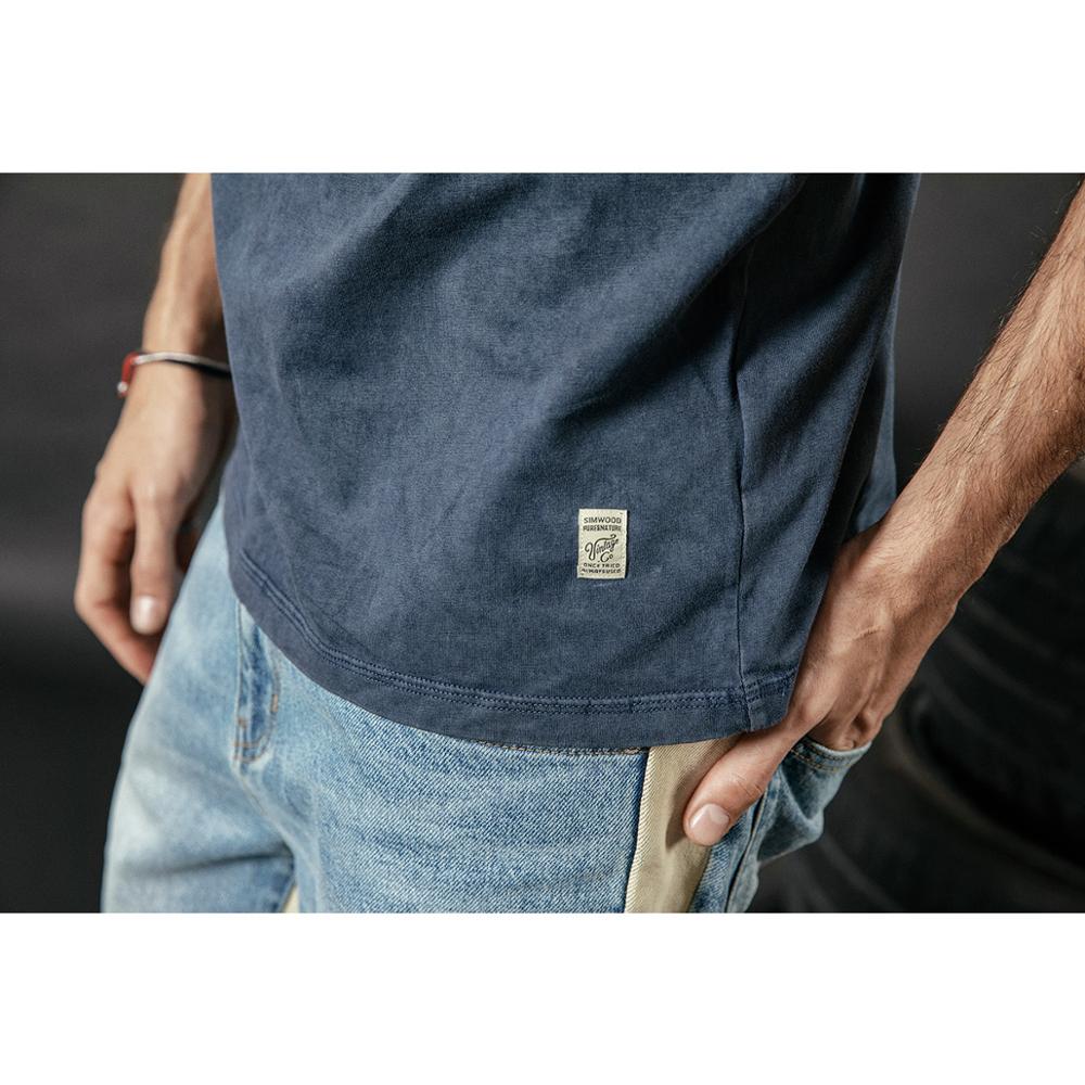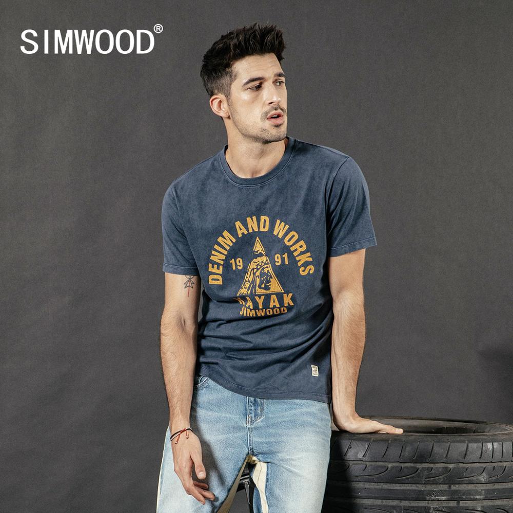 SIMWOOD 2019 summer new 100% cotton t-shirt men snow wash vintage tops fashion tees plus size t shirt letter print tshirt 190253