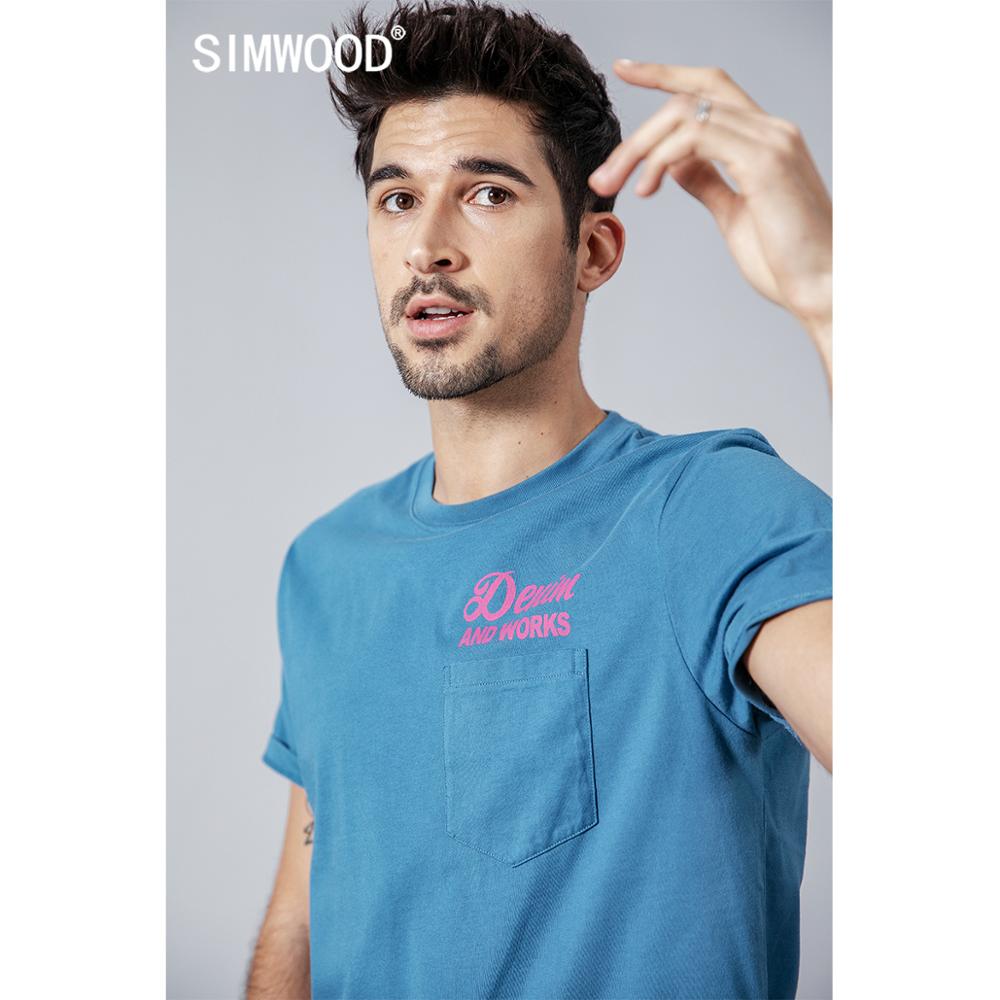 SIMWOOD 2019 summer t shirt men 100% cotton letter print tshirt short sleeve t-shirt hip hop high quality brand clothing 190254