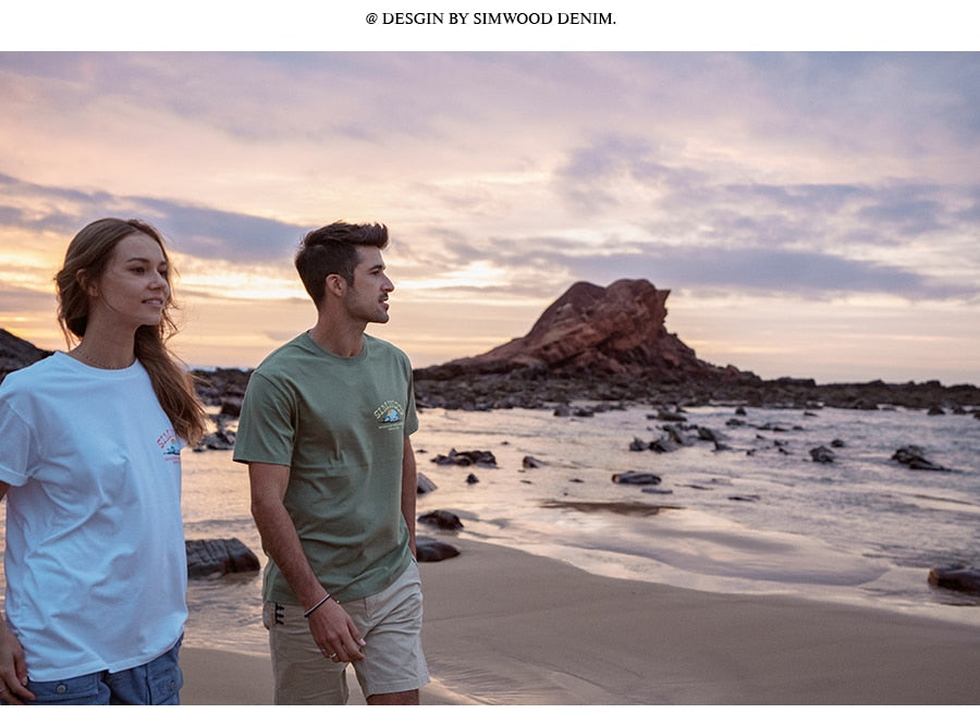 SIMWOOD 2020 summer new Artistic print t-shirt men 100% cotton breathable tops matching couple T shirt plus size SJ120049