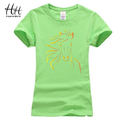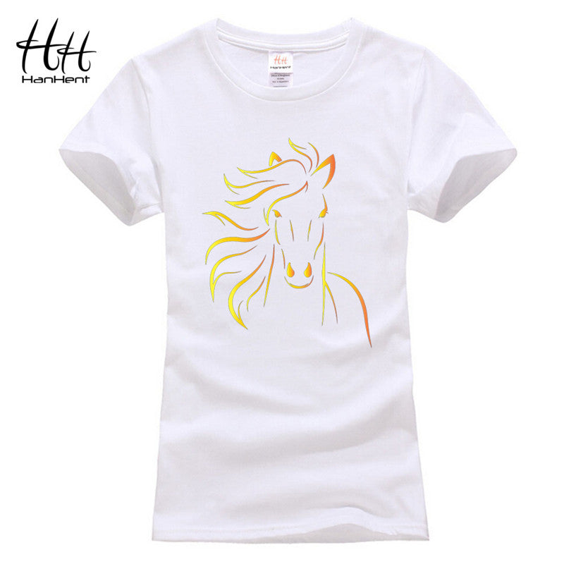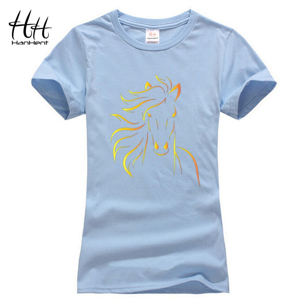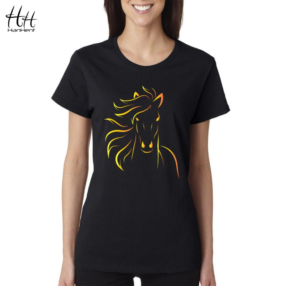 T-shirts HanHent Brand Design Print Horse Women Tshirt Girls Black T-Shirt